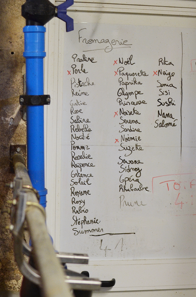 Pâquerette, Sydney, Prune, Miss et les autres paissent tranquillement dans leur enclos à Jouarre. Les 41 chèvres du troupeau de Lætitia portent chacune un collier à leur nom et ont chacune leur caractère selon l’éleveuse. Miss en est la doyenne, le coup de cœur de Lætitia car première née sur l’exploitation. Bien qu’elle ne produise plus de lait, elle a le privilège de rester dans le troupeau. Les autres sont gardées plusieurs années puis sont placées chez des particuliers autant que possible, ou envoyées à l’abattoir. Chaque année, une dizaine de nouvelles chèvres intègre le troupeau, issue des mises bas qui ont lieu à partir de la mi-février.